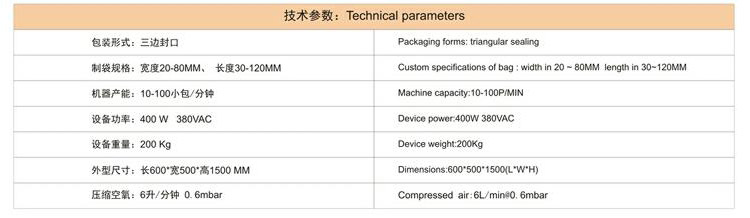 1.彩色觸摸屏和穩(wěn)定可靠的雙軸高精度輸出的PLC控制,制袋、計(jì)量、充填、封合、打碼、切袋一次完成。